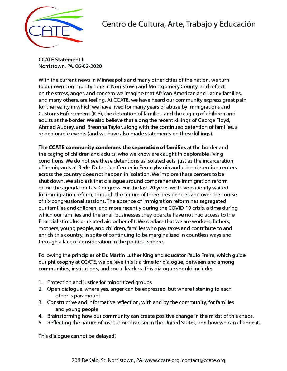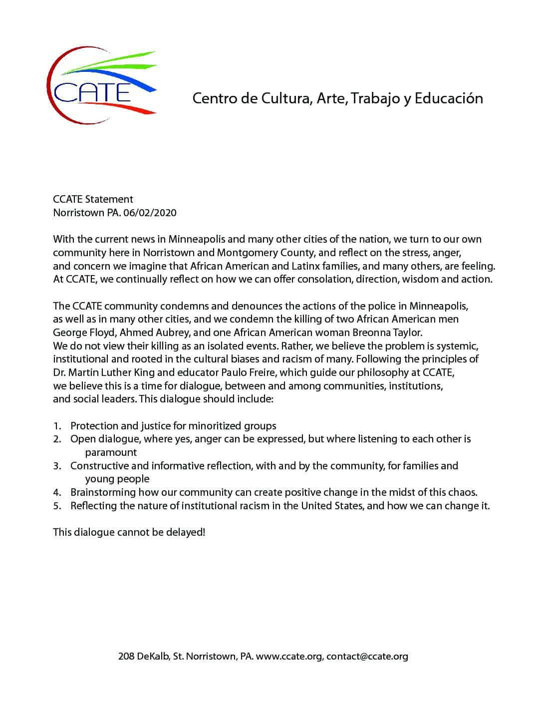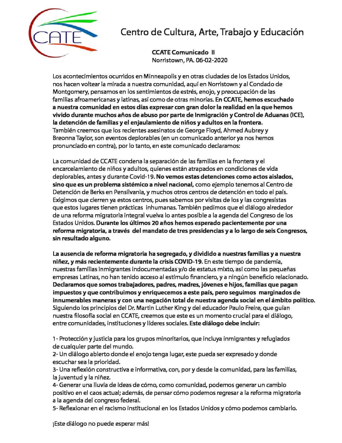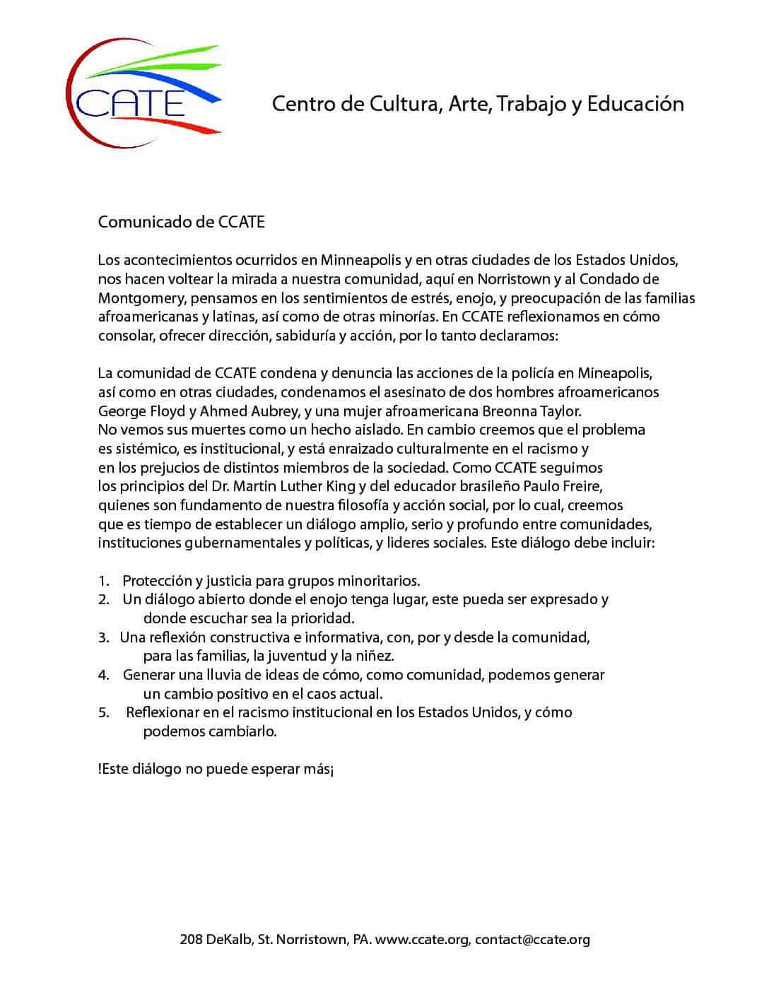 DECLARACÍON SOBRE LA MUERTE DE GEORGE FLOYD (SPANISH)